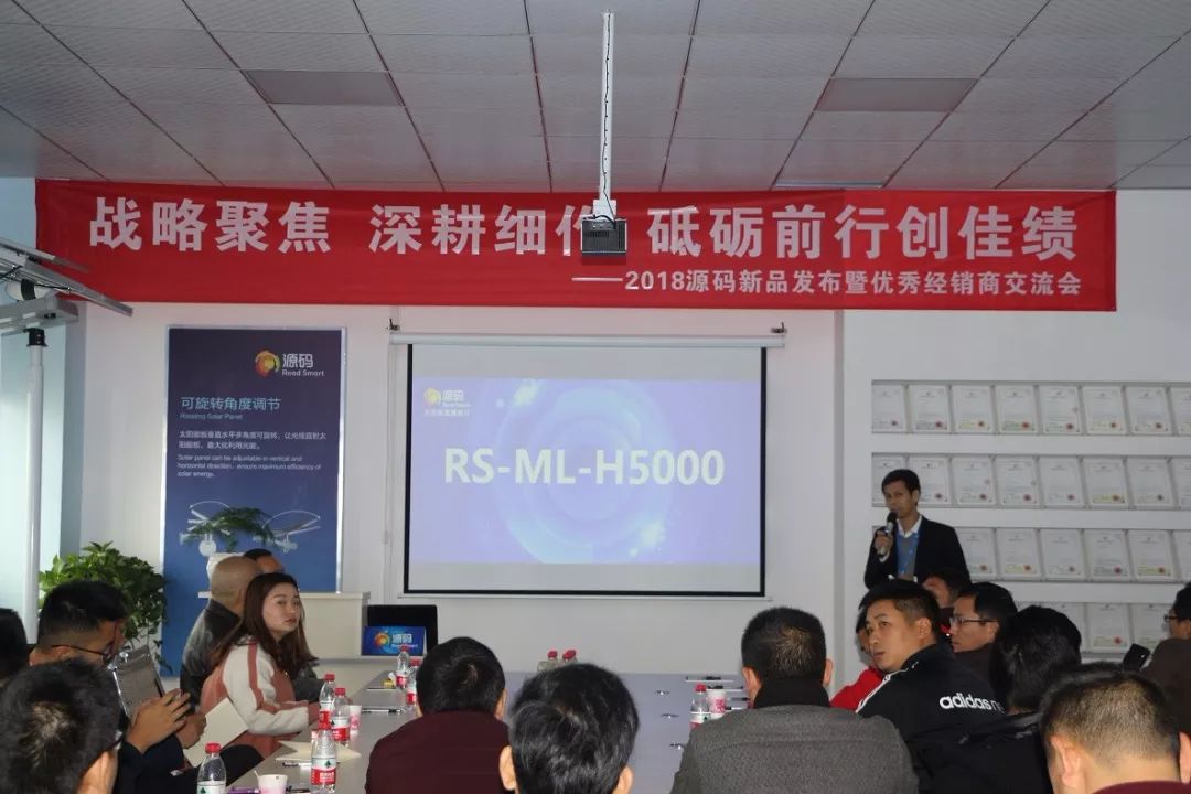 重磅好戲當然是源碼新品發(fā)布,項總從深圳源碼總部帶來了三款新品太陽能智慧路燈:一款是極具性價比的RS-ML-H5000;一款萬眾期待的網(wǎng)絡版春繭燈;一款更美更亮更均勻更持久更智能的駿馬燈。新品的加入讓源碼產品線更加豐富,也讓廣大經(jīng)銷商能夠手握利器,從容應對不同需求的客戶。三款重磅新品的出場驚艷了現(xiàn)場嘉賓,引來一片稱贊,讓在場經(jīng)銷商的信心再一次得到提升。