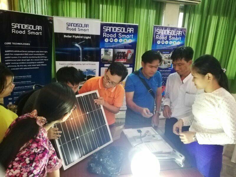 近期,在云南省人民政府和云南省商務廳支持下,由云南省綠色能源行業協會和緬甸教育研發創新司舉辦的光伏應用技術培訓會在仰光順利召開,此次會議旨在加強中緬兩國的光伏應用技術交流,展示先進的光伏應用產品,為兩國的光伏技術提升營造一個良好的契機。其中源碼太陽能智慧路燈代表行業目前最先進的光伏應用技術與產品,被作為培訓嘉賓邀請到此次會議,為緬甸仰光科技創新司、農村發展部、農業大學、曼德勒科技大學、緬甸電力部、緬甸能源部、緬甸農村灌溉部等人員進行相關技術的講解與交流。